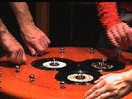 The work: I combined just two modules: the so-called round table (scratch'o'phone!?), an unusual sound interface "enabling anyone to be a virtuoso" (because nobody can be a virtuoso). An element of demistification and a play-thing instead of an instrument. A player makes sound by moving the hands (essentially). The round table however makes a step sideways, since it not only de-mistifes, but also re-mistifies. Or should I say: re-symbolizes. The table is round and it has three records (which can be scratched), but no DJ can produce a decent electro-sound. So: while bringing forth a little bit of the known qualities, we take away the possibility to use it as such. Yes, it is a game of de-manipulation/manipulation, of de-mistification/mistification, of showing/hiding...