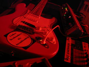 The concert in Vienna was our fifth performance, and Nova used the computer system of granular synthesis with a special "door"/entry point for the someone from the public to plug-in (the interface was the bontempi organ found in Vienna). Mancek used his electric guitar with his apple mechanical toolbox and the digital effects, and Savski used a computer algoritm with an interface composed of webcam, computer keyboard and a midi interface of some kind. Nova said after the concert that he had the best feeling so-far, Mancek agreed, and Savski said that also Berlin was quite good.